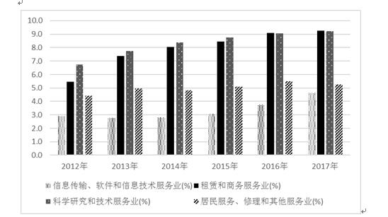 图5 2012-2017年部分行业占第三产业增加值比重图