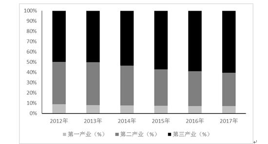 图7 2012-2017年天津市社会从业人员三次产业占比情况