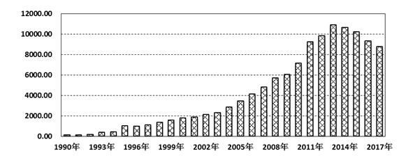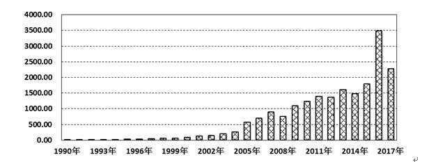 图1 1990-2017年全市房屋施工面积(万平方米)
