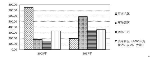图4 2005年和2017年分区域商品房销售面积(万平方米)
