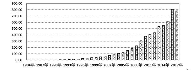 房地产业涉及的产业链长、相关产业多、关联度大,其发展与国民经济的发展是息息相关、相互促进。从1984年到2017年,我市房地产业增加值由0.85亿元增加到783.27亿元,占地区生产总值的比重由1984年的0.6%提高到2017年的4.2%。
